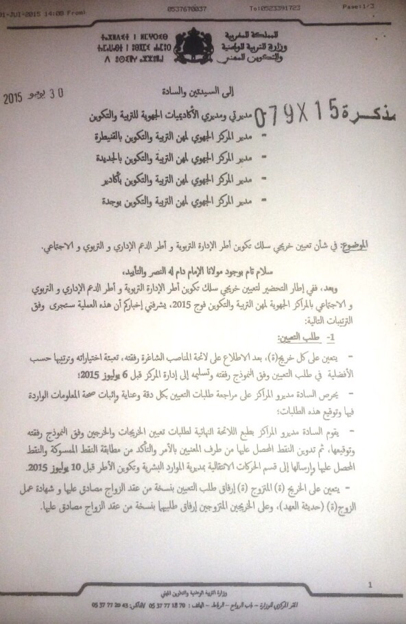 صدور مذكرة تعيين الفوج الأول من خريجي أطر الإدارة التربوية