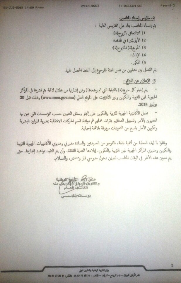 وزارة التربية و التعليم تعلن عن مباراة مهنية للتعيين في الدرجة الأولى من إطار أستاذ التعليم الثانوي التأهيلي