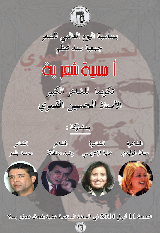 جمعية سند للمرأة و الطفل ضحايا العنف و الإهمال تكريما للشاعر الكبير ، الأستاذ الحسين القمري تنظم أمسية شعرية بمشاركـــــــة: